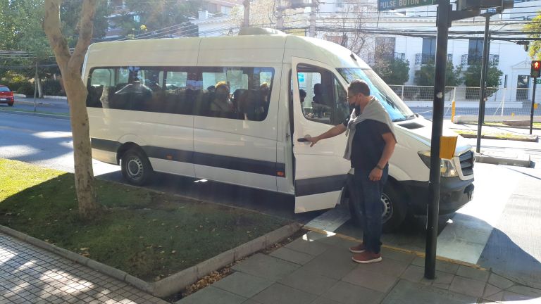Uma característica desse passeio de 1 dia até Cajón del Maipo e Embalse el Yeso é que todas as agências gostam de programar a saída para bem cedo. O horário exato varia em função da época do ano, da quantidade de participantes da excursão e da localização do seu hotel, já que a van ou ônibus da agência de turismo começa a recolher os passageiros por volta das 7h/8h da manhã seguindo uma rota que faça sentido para otimizar o tempo. O horário exato da nossa saída foi avisado na véspera pelo whatsapp da Full Tour, então dá para se programar para dormir o máximo possível e tomar o café da manhã com calma. No nosso caso, ainda demos a sorte de sermos os últimos da lista e fomos buscados exatamente as 9h da manhã.