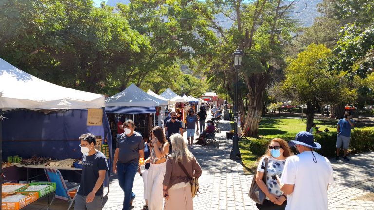 O trecho entre Santiago e San José del Maipo pode levar entre 1h e 1h30 dependendo do trânsito. Apesar de ser a principal cidade da região do Cajón del Maipo, San José de Maipo é um pequeno vilarejo sem grandes atrativos. No dia do nosso passeio tinha até uma feirinha de artesanato acontecendo na pracinha central do vilarejo. Mas a cidade costuma servir mesmo como ponto de parada para a maior parte dos passeios da região.