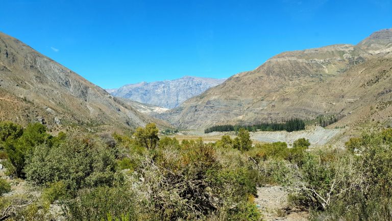A medida que nos embrenhamos no cânion e subimos um pouco mais em direção aos 2.568 metros de altitude onde se encontra o Embalse el Yeso, a paisagem se torna mais árida e montanhosa — e mais encantadora. Se no inverno esses trechos costumam estar cobertos de neve, no verão é possível observar a vegetação e as diferentes nuances da coloração das rochas. Mesmo no verão, ainda há algum resquício de “neve eterna” nas montanhas mais ao fundo.