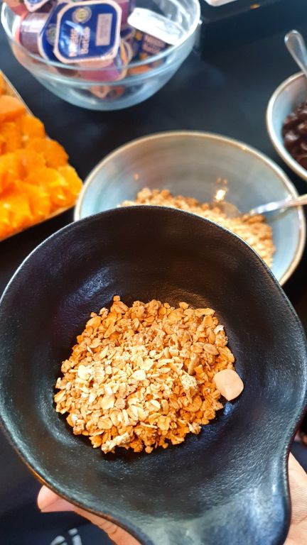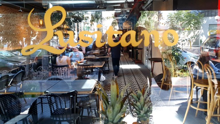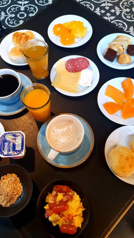 Outra característica imperdível dos hotéis convencionais que o hUB Providencia não abre mão é a oferta de um bom café da manhã ao estilo buffet continental — afinal, quem não ama um café da manhã de hotel, não é mesmo? O serviço acontece todos os dias no restaurante/cafeteria anexo ao lobby do hotel, o charmoso Lusitano. Antes de mais nada, uma pausa para destacar a belíssima decoração do ambiente, proporcionando aquele clima super agradável para iniciar o dia.