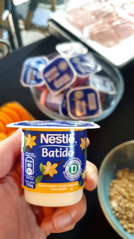 Completando a linha das opções mais leves para o café da manhã, iogurte (sabores variados) e granola.