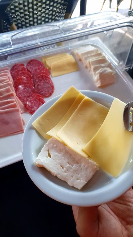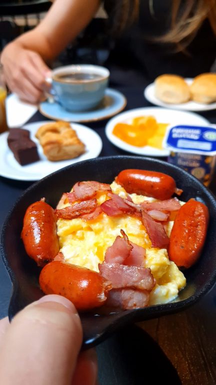 Na parte de queijos, frios e salgados em geral, havia sempre 2 opções de queijos (mantecoso e queijo branco) e 2 opções de frios (presunto e salaminho). O tradicional combo de ovos mexidos, bacon e salsichas é também uma boa opção para quem gosta de começar o dia com mais “sustança”. 🙂