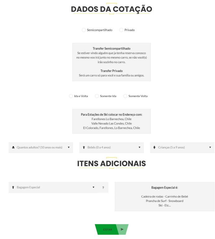 Na página seguinte, você deve preencher os dados do formulário referentes a sua viagem e ao tipo de serviço de traslado desejado.