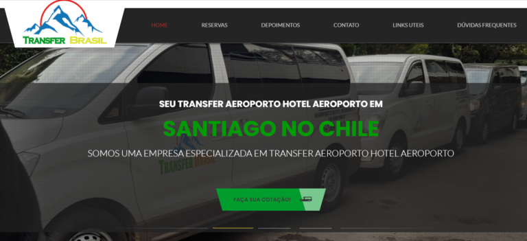 Fazer um orçamento e contratar o serviço da Transfer Brasil é bem rápido e prático. Basta acessar o site oficial (https://transferbrasil.cl/) e clicar no menu “reservas” ou no botão em destaque “Faça sua Cotação“: