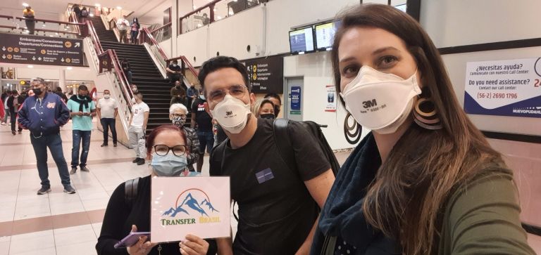 Depois de aterrissar em solo chileno, assim que nos conectamos no wifi gratuito do aeroporto, nos comunicamos novamente por whatsapp avisando da nossa chegada. A equipe da Transfer Brasil foi nos informando de cada passo de todo o processo desde o desembarque até encontrarmos o motorista e/ou a pessoa da equipe responsável por nos receber.