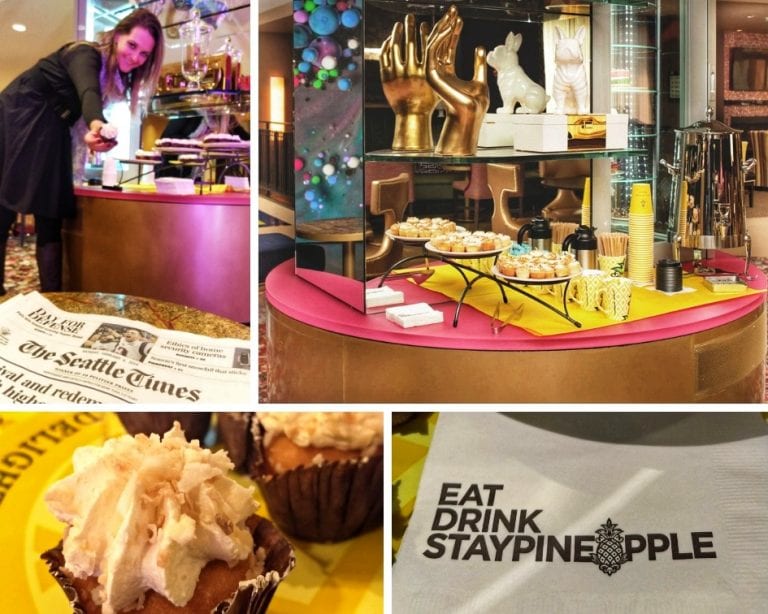 Essa foi a nossa primeira vez em um hotel Staypineapple e a estadia no The Maxwell Hotel de Seattle não poderia ter sido melhor aproveitada, mesmo com a neve – algo raro de se ver na cidade. Pudemos aproveitar os cupcakes com café à tarde, os luxos confortáveis do quarto como o roupão macio e quentinho combinado com a roupa de cama fofinha exclusiva. Isso sem contar a pipoca e a máquina de café com cápsulas ilimitadas na caneca linda de toda ornamentada de abacaxi (adoro canecas!). Outro ponto alto da estadia é o fato do hotel oferecer o shuttle gratuito para os hóspedes se deslocarem até os pontos turísticos da cidade (não esqueça que com o CityPASS Seattle você economiza 50% no valor do ingresso das atrações). Enfim, um hotel aconchegante e divertido que combinou muito com o nosso estilo de viagem! Deixou aquela vontade de conhecer os outros hotéis da rede. 🙂