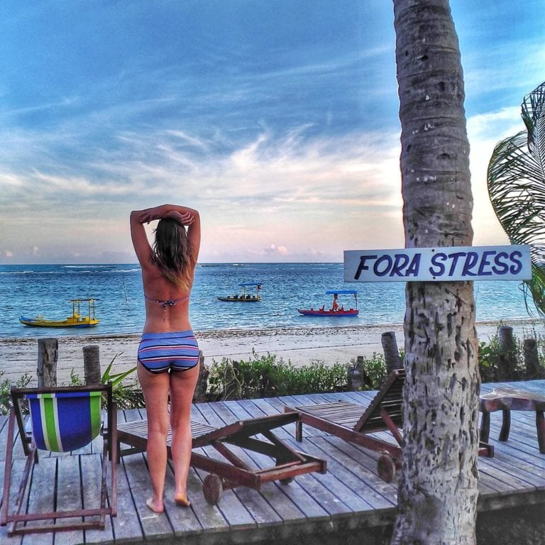 Mas o melhor de tudo é poder ficar descansando e aproveitando essa paisagem de tirar o fôlego tendo serviço de bar o tempo todo disponível e incluído. Sim, a equipe do resort passa com a bandeja de bebidas o tempo todo, servindo água mineral, água de coco, cerveja, caipirinha ou coquetéis. Basta pedir que eles trazem! Maravilha, não!?