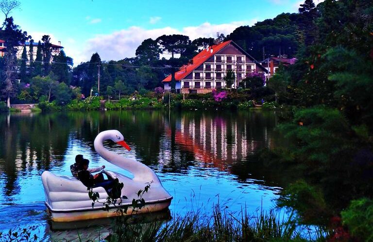 Mas o maior destaque entre os turistas é a possibilidade de passear de pedalinho pelo lago – atividade paga e que funciona apenas durante o dia. Seja no Cisne ou na Caravela, casais apaixonados e famílias com crianças se divertem nas águas calmas do Lago Negro.