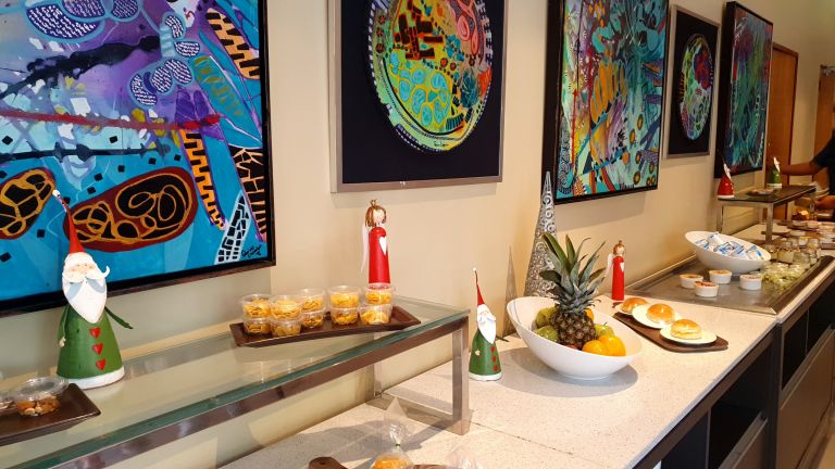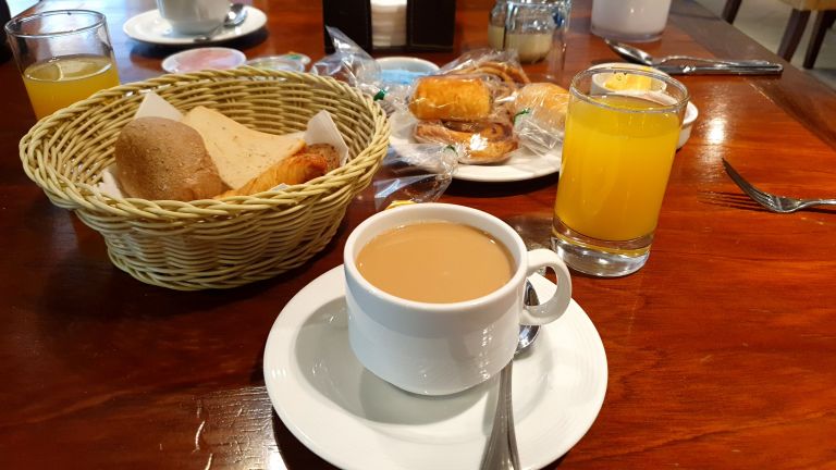 O buffet de café da manhã do hotel é bem satisfatório e oferece um pouco de tudo, apesar de não ter grande variedade de produtos dentro de cada categoria. Entre as frutas, por exemplo, os potes de frutas já processadas trazia melancia, maçã, laranja e abacaxi. Sentimos falta de uma maior variedade como bananas e especialmente as frutas vermelhas tradicionais do Chile, como cerejas e mirtilos.