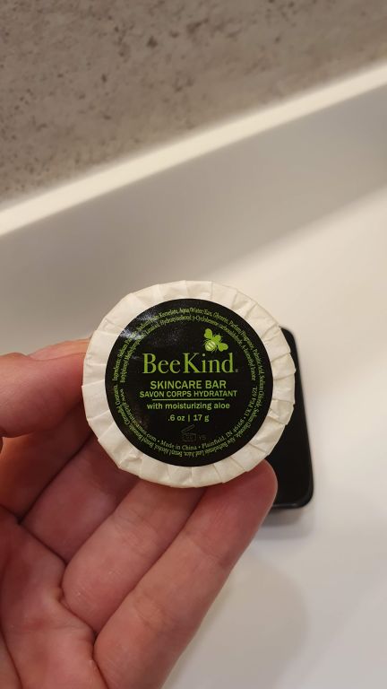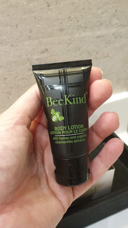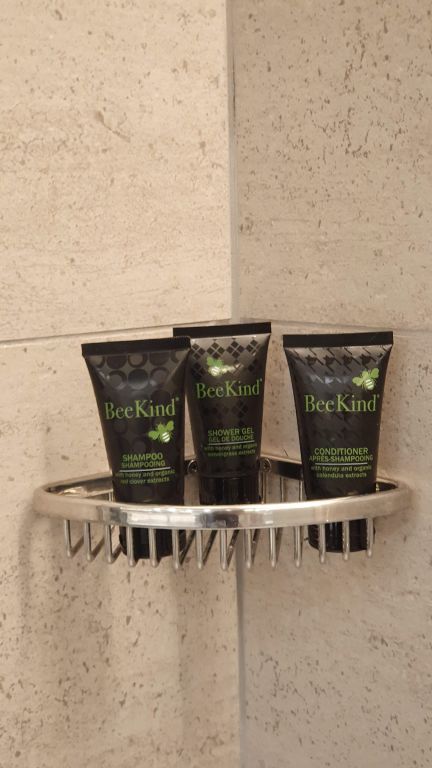 O kit de amenities / produtos de higiene é bem completo, contando com sabonete, shampoo, condicionador e hidratante (item que não é tão comum nos hotéis de Santiago). Todos da linha BeeKind®.