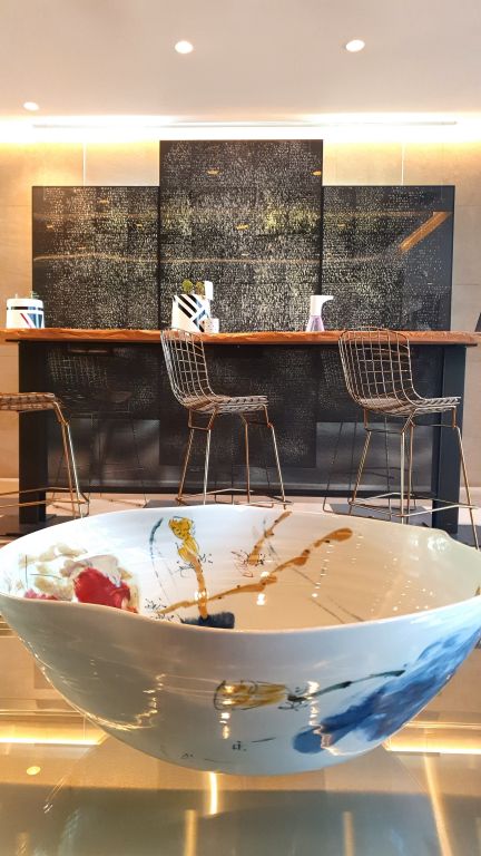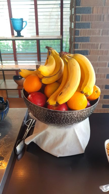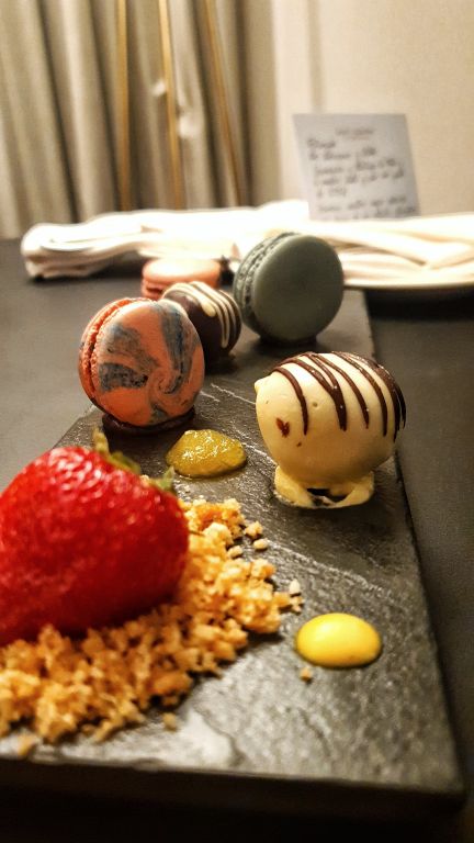Falando em experiência, não podemos deixar de mencionar o mimo surpresa que o hotel deixou para nós no quarto, no momento da chegada: uma ardósia repleta de gostosuras como macarons, bombons e frutas frescas. Combinação perfeita para acompanhar uma xícara de de Nespresso! 🙂