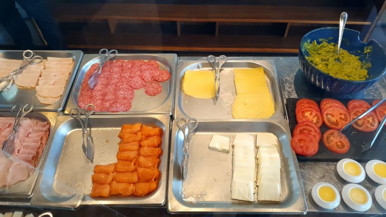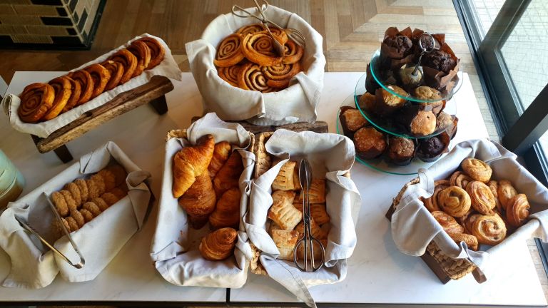 Entre os pães e bolos, além da variedade, é necessário mencionar a qualidade de cada produto. Absolutamente tudo que era servido no buffet do Hyatt era de excelente procedência, e isso se refletia diretamente na qualidade dos croissants, muffins e cinnamon rolls. Difícil dizer qual foi o nosso favorito entre eles — na dúvida, escolha um de cada e seja feliz! 🙂