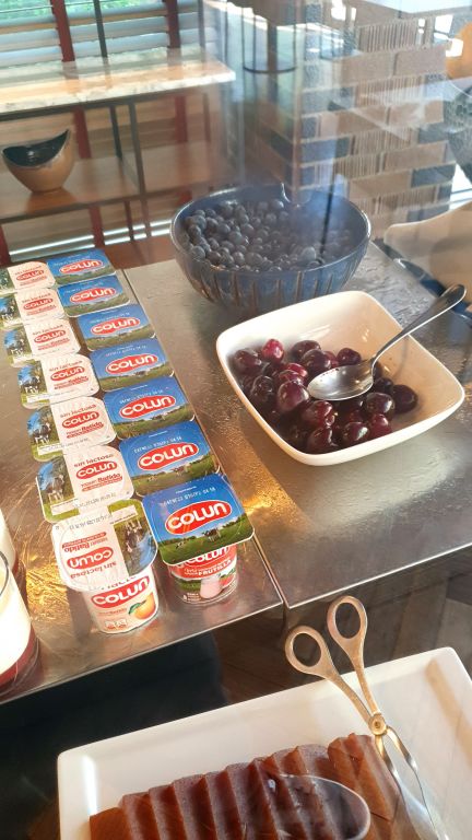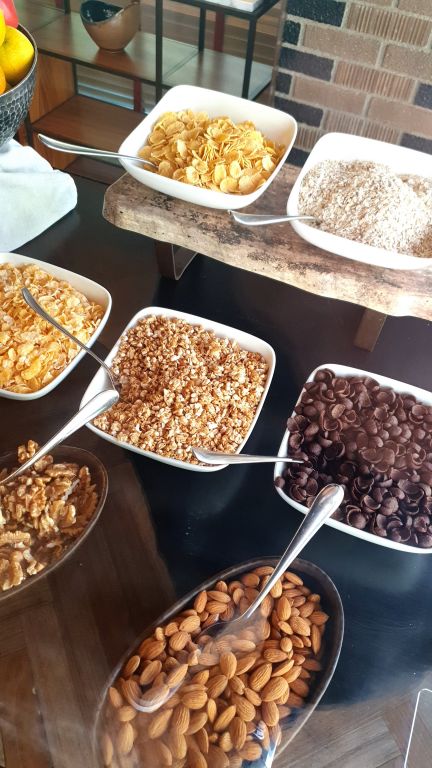 Começando pela parte mais básica, o buffet traz ótima variedade de grãos, castanhas e amêndoas para acompanhar as frutas frescas (incluindo bananas, algo não muito comum nos hotéis chilenos) e os iogurtes.