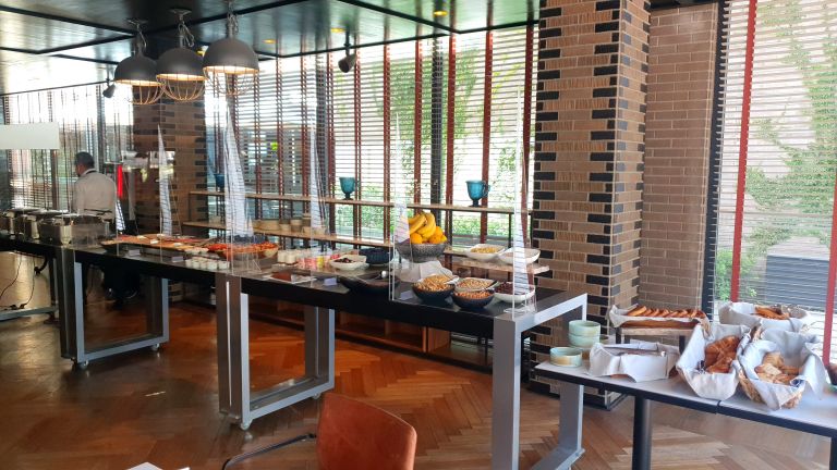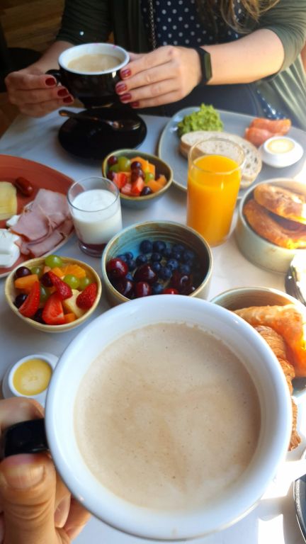 Falamos de localização, de arquitetura, de estilo, de conforto, dos quartos… Mas o café da manhã do Hyatt Centric Las Condes Santiago merece um capítulo a parte. Nós somos fãs de café da manhã de hotel, mas esse buffet do Hyatt de Santiago superou todas as expectativas e foi sem dúvidas o melhor da viagem por Santiago. A começar pelo ambiente do restaurante no andar térreo onde é servido o café da manhã, o Amandine Bistro et Vins (que também funciona como restaurante no restante do dia mas que infelizmente não deu tempo de experimentar no jantar, ficou para uma próxima viagem).