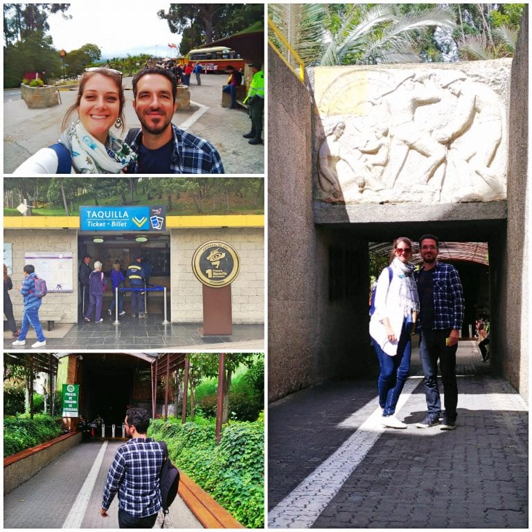 O carro nos deixou no ponto mais próximo possível da entrada da Catedral de Sal de Zipaquirá , perto do guiché de compra de ingressos. Como nosso passeio já tinha o ticket incluído, passamos direto e fomos para a entrada das minas de sal que levam até a Catedral. Não há hora marcada no ingresso, e ao longo do dia acontecem várias visitas guiadas, sempre em grupo, e com horários previamente definidos. Esperamos cerca de 5 minutos e conseguimos fazer a visita com o grupo das 9h30.