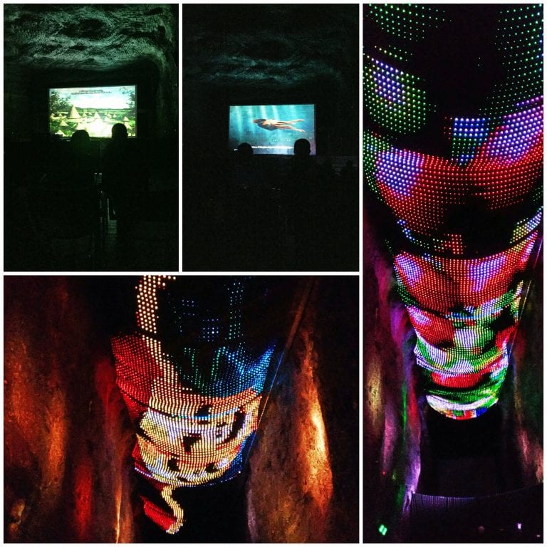 Há ainda uma espécie de show de luzes no teto de uma das salas, e um pequeno museu que conta a história da mineração e das esmeraldas (outra riqueza da região, além do sal).