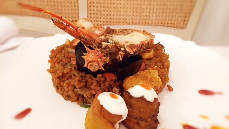 Da fachada ao ambiente interno, o Candé faz a gente mergulhar no universo cultural de Cartagena. A entrada do restaurante conserva uma coleção de elementos e objetos típicos ornamentando um lounge usado para acomodar os clientes que aguardam sua mesa. Merece destaque também o atendimento da equipe que foi essencial para a nossa experiência. Nos explicaram cada ingrediente dos pratos fazendo questão de usar termos traduzidos para o português do Brasil. A partir da escolha da entrada e na sequência dos pratos fuertes (ou principais), percebemos que tínhamos acertado na decisão de experimentar a comida 100% cartagenera no Candé. Destaque para o arroz marinero, onde o adocicado do coco dá o tom ao arroz acompanhado de frutos do mar frescos.