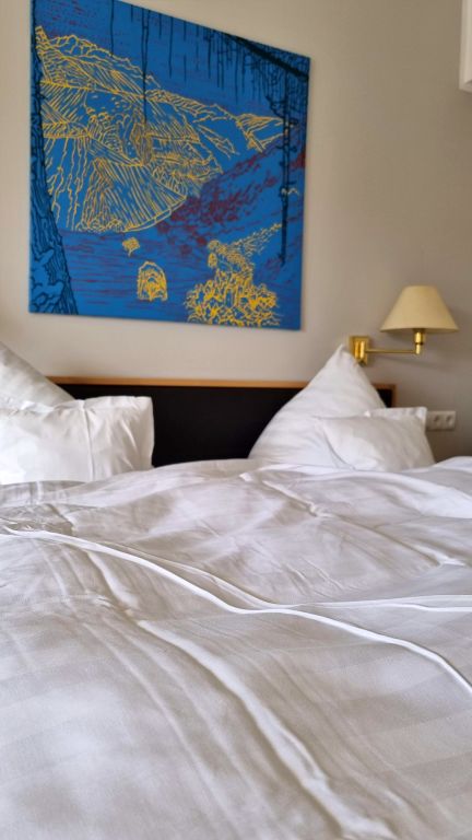 O Baudobriga Rheinhotel é um hotel 3 estrelas com ótimo custo-benefício e gestão familiar, daqueles bem característicos das pequenas cidades alemãs. Na fachada do prédio de 3 andares, a bela folhagem dos parreirais Já deixa clara a forte relação com os vinhos — como já mencionamos, a família também é responsável pela vinícola Weingut Königshof e muitos dos vinhos podem ser experimentados durante a estadia. Aliás, as mesinhas do restaurante do hotel (onde também é servido o café da manhã) são um convite irresistível para uma bela refeição típica ou simplesmente para um vinho curtindo o pôr do sol no rio Reno — na sequência do artigo a gente conta nossas experiências gastronômicas por lá.