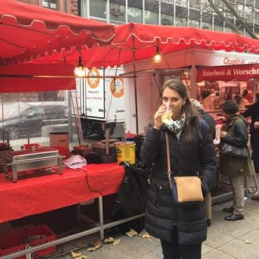 O mais legal de tudo foi ver que os frequentadores eram todos, ou quase todos, locais. A feira estava bem cheia, e confesso que não vi um turista além de nós. Todos comendo, comprando, bebendo apflewein e se divertindo. Outro sinal da quase ausência total de turistas era o fato dos vendedores não falarem uma palavra de inglês. Pra quem curte, não tem jeito melhor de começar uma viagem do que essa imersão total na cultura local. É claro que a gente não aguentou ficar só olhando, e além das muitas provinhas, comemos uma Wurst com mostarda e pão. A fome e a empolgação eram tantas que nem tiramos foto. 🙂