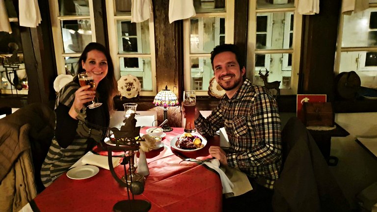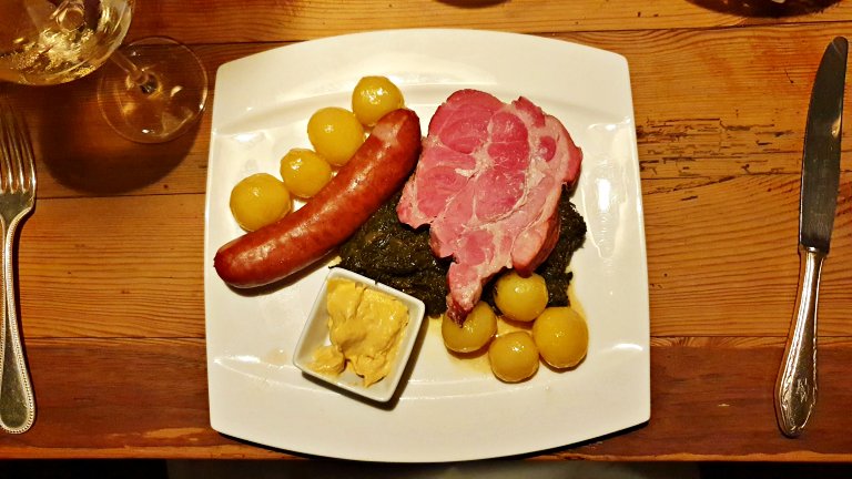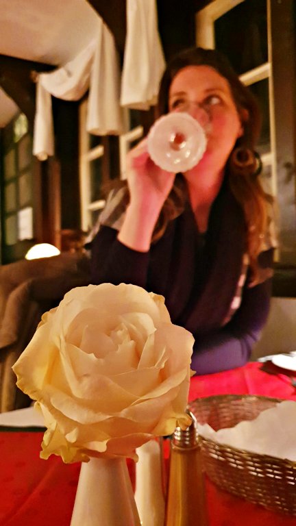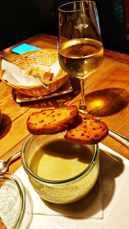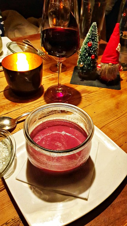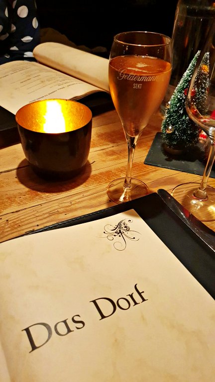 O que pedir no Das Dorf: como nossa viagem aconteceu no inverno, o “Menu de Inverno” (entrada, prato principal e sobremesa a um preço fixo) foi sem dúvidas uma ótima escolha. Para harmonizar, os vinhos locais servidos em taça são uma ótima pedida.