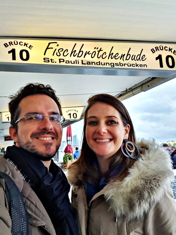 O que pedir no Brücke 10: Para quem deseja seguir a tradição à risca, a versão do sanduíche com arenque cru e cebolas é o que tem mais saída entre os locais. Entretanto, nós já havíamos provado algo bem parecido em Volendam, na Holanda, e preferimos pedir as versões com arenque defumado e outra de peixe empanado. Para acompanhar, basta pedir uma cerveja e curtir a bela vista do rio Elba.