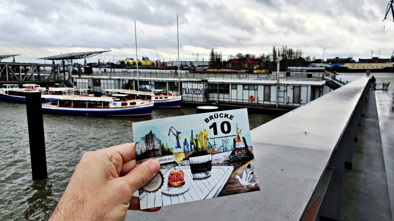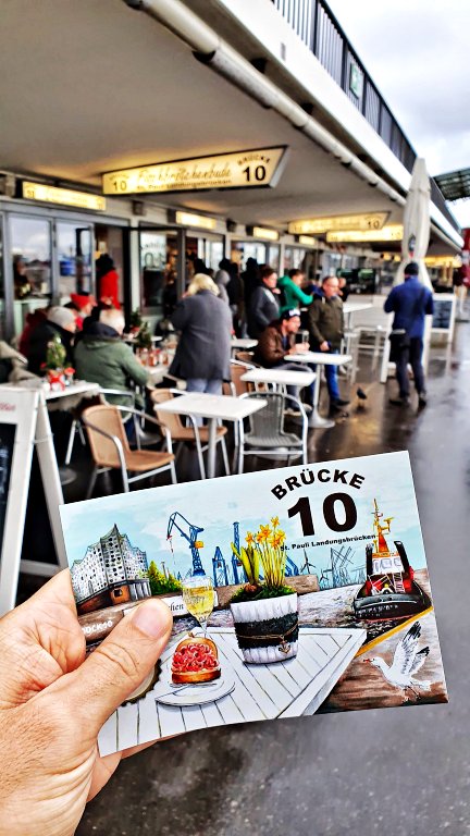 O passeio pela zona portuária de Hamburgo não está completo sem uma pausa para almoçar ou lanchar no popular Brücke 10. O local de estilo simples e bem informal funciona ao melhor estilo “comida de rua” e recebe turistas e também público local, em especial nos dias ensolarados.