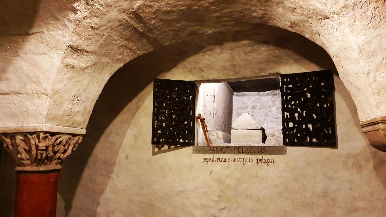 - Cripta: Original dos séculos IX e X, a cripta conta com os quatro medalhões originais em talha dourada da parede exterior da capela-mor. O principal entre os tesouros, único no mundo cristão, é o “Majestas Domini“, com mais de 1000 anos de história.