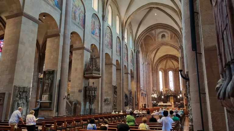 Além de admirar a beleza espetacular da Catedral pelo lado de fora, não deixe de conhecer também seu interior que é aberto para visitação gratuita todos os dias da semana. Seja qual for o perfil de viajante, a Catedral é uma daquelas paradas obrigatórias de qualquer roteiro em Mainz. Reserve pelo menos 30 minutos do seu roteiro para explorar a imensa nave central, ricamente decorada e repleta de tesouros históricos e artísticos.
