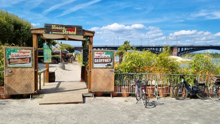 Nos meses de verão, um dos atrativos da cidade é a “Praia de Mainz” (Rheinstrand Mainz), uma estrutura de praia artificial montada justamente aos pés da ponte Theodor Heuss. Nessa época, o local é palco de inúmeros eventos e oferece bebidas típicas da estação e espaços para banho de sol e prática de esportes de praia.