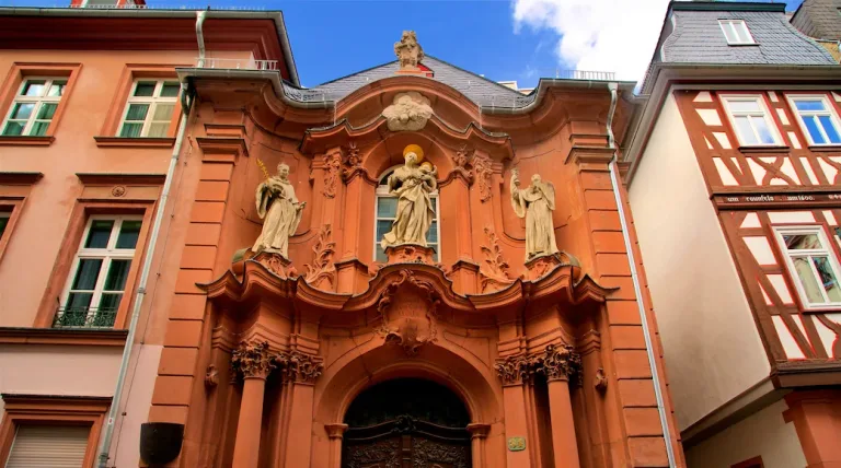 Virando a esquerda, você sairá novamente na Marktplatz e na Catedral de Mainz. Mas a sugestão é que você vire a direita em direção a Igreja de Santo Agostinho e aproveite para dar uma conferida nas vitrines das muitas lojas de produtos locais da Augustinerstrasse. Os cafés e restaurantes ao longo da rua são igualmente encantadores, oferecendo uma boa opção de pausa para desfrutar de uma refeição rápida ou um café observando o movimento da rua.