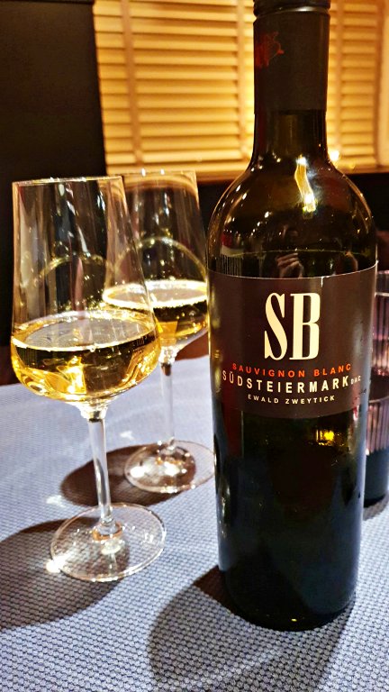 1º serviço – Bluefin Tuna: atum Bluefin (com certificado de pesca legal) cozido no ponto exato, acompanhado de avocado, maçã e gergelim. O pareamento de vinhos foi feito com uma taça do austríaco Südsteinermark (sauvignon blanc).