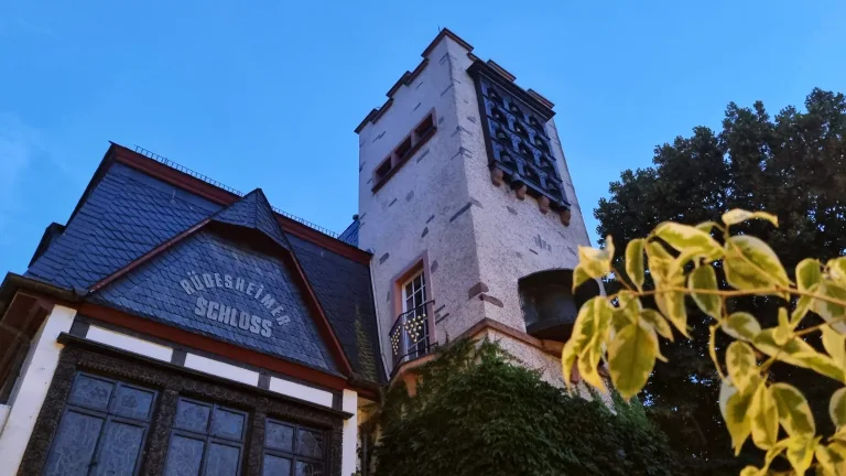 E um desses restaurantes é justamente a nossa outra dica de onde comer em Rüdesheim: o hotel e restaurante Breuer’s Rüdesheimer Schloss. Aliás, o próprio edifício/castelo do Breuer’s Rüdesheimer Schloss já é uma das atrações que fazem da Drosselgasse uma das ruas mais populares da cidade, com sua fachada de arquitetura típica e sua torre de sinos que, de hora em hora, badalam uma melodia para o encanto dos turistas.