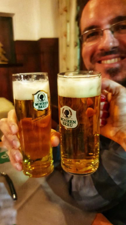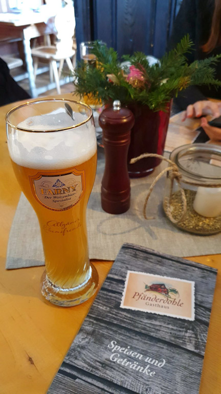 Com cardápio repleto de pratos típicos da culinária austríaca e também cerveja on tap (ou vom fass), o Pfänderdohle fica distante apenas 8 minutos da estação descendo à pé pela trilha. E antes que você ache que é um lugar caro e sem alma, daqueles pega-turistas já que está em uma atração famosa da cidade, saiba que fomos surpreendidos positivamente.