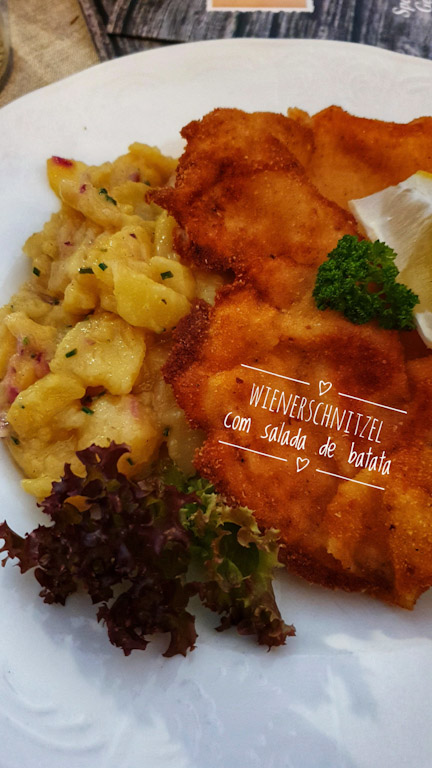 Wienerschnitzel com salada de batata ( um típico prato austríaco servido em qualquer época do ano)