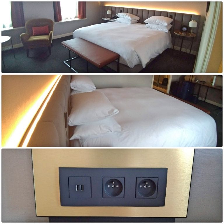 Uma das coisas boas de se hospedar em hotéis clássicos de grandes redes é que os quartos são sempre bem amplos. No caso do Hilton Brussels Grand Place não é diferente. Conta com ótimo espaço interno, bem arejado e com bastante luminosidade natural por conta das 2 janelas com vista para a cidade. Diga-se de passagem, uma linda vista! Demos até a sorte de voltar ao quarto num final de tarde e pegar esse pôr do sol espetacular das fotos. Tão lindo que foi para o nosso Instagram 🙂