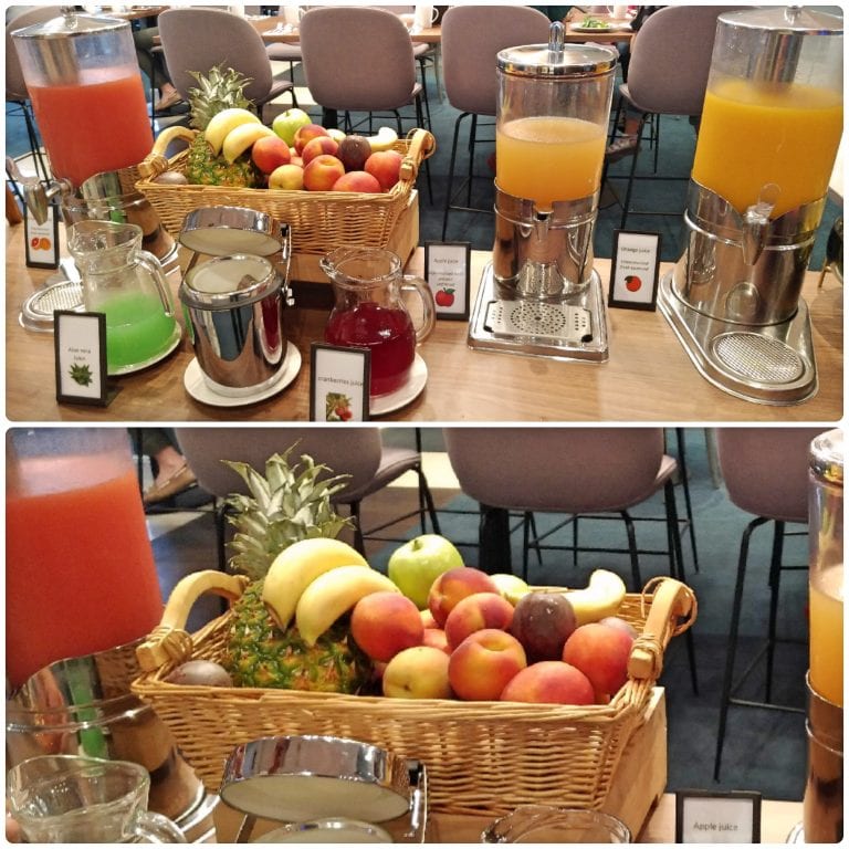 O buffet oferece tantas opções que é simplesmente impossível experimentar de tudo se hospedando apenas por 2 noites. A oferta de frutas é excelente e para todos os gostos, com opções frescas, secas, salada de frutas, e uma ilha com ao menos 5 tipos de sucos de frutas naturais – laranja, maçã (nosso favorito), entre outros.