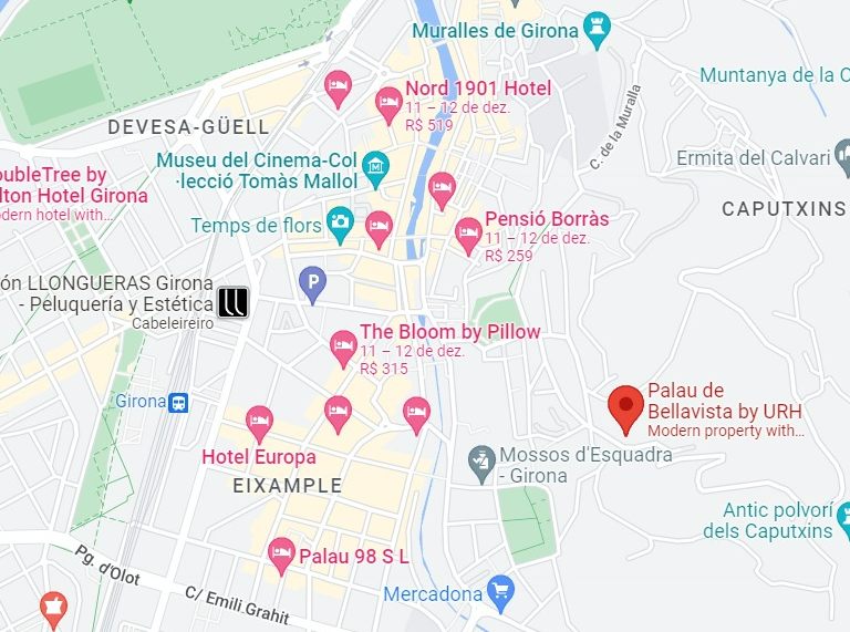 Na Booking.com é possível fazer sua reserva no Hotel Palau de Bellavista Girona com diárias a partir de €77 (quarto duplo, SEM café da manhã). O café da manhã está incluído no valor da diária dos quartos de categoria superior, ou pode ser contratado separadamente (custo a partir de €16 por pessoa).