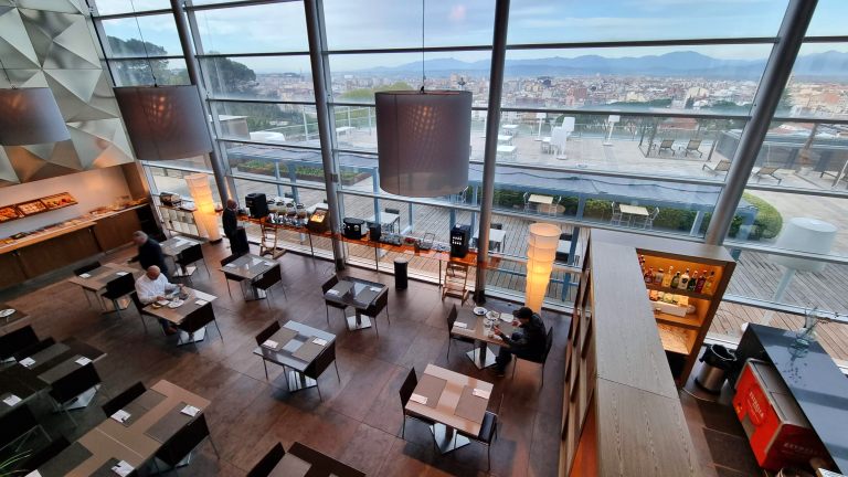 Para quem também aprecia um belo café da manhã, esse momento da estadia no Hotel Palau de Bellavista será sem dúvidas um dos pontos altos da experiência. Servido em um salão anexo ao lobby com direito a vista panorâmica da cidade, o café da manhã ao estilo buffet continental é muito completo, com opções para todos os gostos e perfis de viajante.