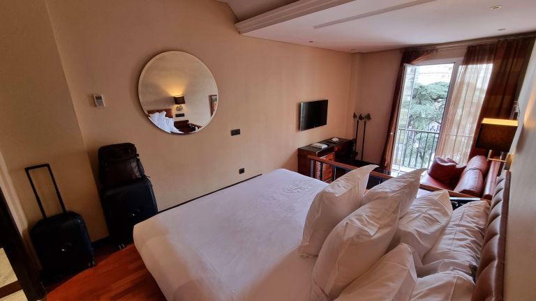 O Hotel Villa Real dispõe de 115 quartos de diferentes categorias, boa parte deles com sacadas ou terraços com vistas espetaculares da Plaza de las Cortes. Nós ficamos em um quarto da categoria “Superior com cama de casal e vista para a cidade“, que por incrível que pareça (pelo nome e pela qualidade) é um dos quartos de padrão de entrada do hotel.