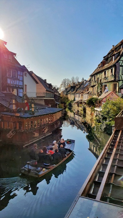 Aos pés de uma das pontes principais (ponte Saint-Pierre) fica o ponto de partida dos Passeios de barco em Colmar. Por valores a partir de 6€ por pessoa (também incluso no Colmar City Pass), é possível fazer um tour comentado com cerca de 25/30 minutos pelo pequeno trecho navegável do rio. A bordo do barco é possível observar por um ponto de vista único as casas de enxaimel e a tranquilidade do bairro. Nós gostamos desse tipo de passeio e quase sempre fazemos, mas confesso que esse de Colmar não é imperdível.