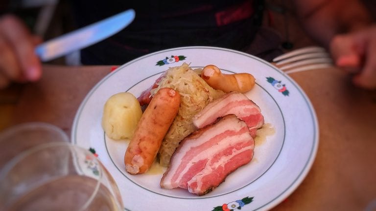 Pedir chucrute com carne de porco na Alsácia é sempre sinônimo de comer bem (em quantidade e em qualidade). Mas precisamos dizer que esse estava especialmente bom, 🙂