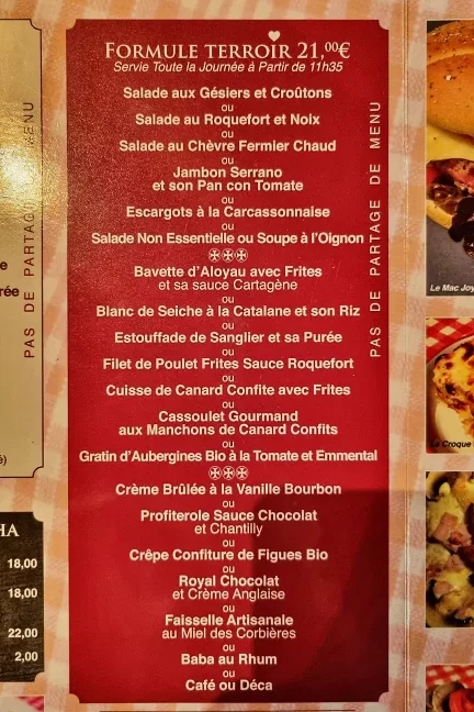 E certamente seu roteiro por Carcassonne tem, pelo menos, um dia inteiro dedicado a conhecer essa parte alta da cidade que é um dos principais atrativos. O que nos leva a ter essa recomendação aqui neste guia de onde comer em Carcassonne. Com muitas mesas ao ar livre na praça no melhor estilo francês, o Le Trouvère é um restaurante de culinária tradicional da região que oferece menus fechados e pratos a lá carte. Além das mesas externas, o Le Trouvère ainda dispõe de 3 andares repletos de mesas em salões de estilo clássico, ou seja, está preparado para atender a demanda turística com agilidade — desde mesas individuais até mesmo grupos maiores.