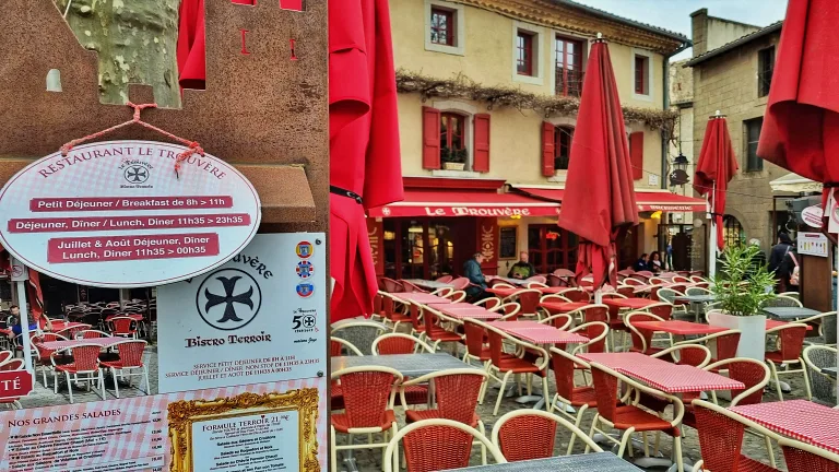 Localizado na Praça Marcou dentro da cidadela medieval murada de Carcassonne, no coração turístico e histórico da cidade, o restaurante Le Trouvère é uma ótima opção de comida típica com bom custo-benefício.