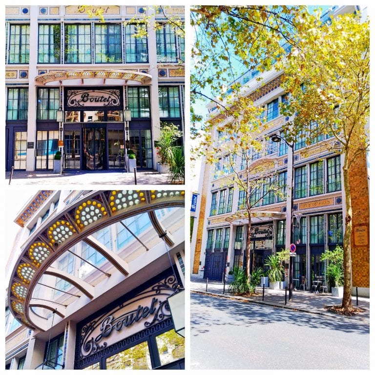 Da saída da estação de metrô Faidherbe – Chaligny na movimentada Rue du Faubourg Saint-Antoine – uma das principais do bairro – até avistarmos a fachada do hotel foram menos de 2 minutos de caminhada. Aliás, que fachada! O Hotel Paris Bastille Boutet MGallery by Sofitel funciona em um edifício histórico, a Maison Boutet – que deu o nome ao Hotel. O local já foi uma importante madeireira e até uma fábrica de chocolates, e o processo de transformação em hotel preservou muito dos elementos e do charme originais.