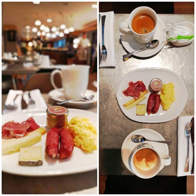 E como não falar do salmão defumado e dessa mesa cheia de presuntos crus e queijos franceses? Salmão defumado era algo que definitivamente não tínhamos habito de comer no Brasil (especialmente no café da manhã), mas que agora viramos fãs!