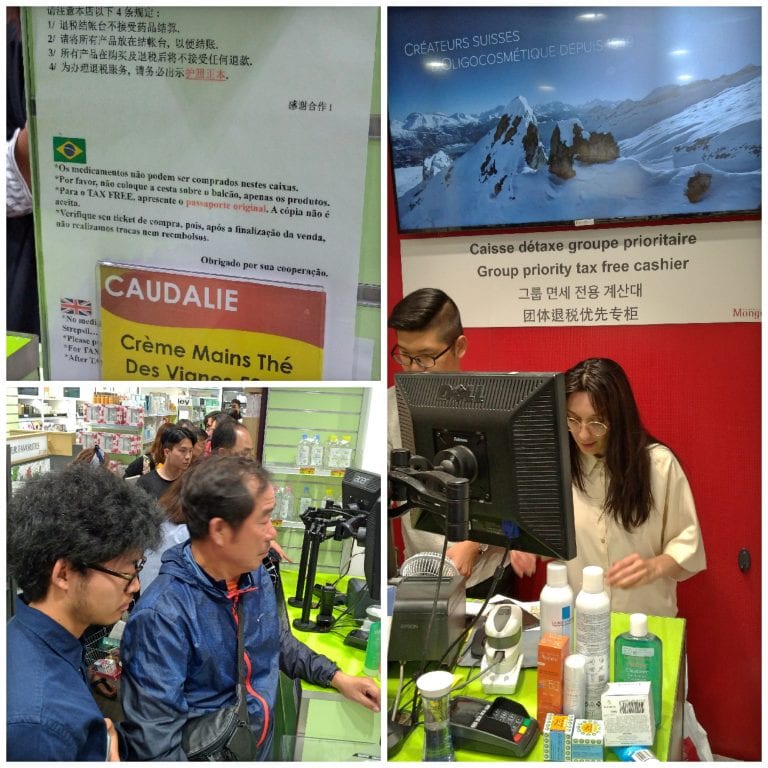 Dica importante: fique atento porque existe um atendimento especial para quem é turista e precisa dos formulários de tax free ou “détaxe” em francês. Todo turista que faz compras na Europa tem direito a pedir reembolso de 12% referente ao imposto embutido no preço para compras a partir de 175€. Para isso, é preciso que a loja faça parte do procedimento com os formulários e então você poderá fazer a sua parte na alfândega do aeroporto antes de embarcar de volta ao Brasil. A Farmácia Monge tem como vantagens o percentual de 15% e a possibilidade de fazer na própria loja e não na alfândega. Por isso, os caixas da Monge para turistas tem um pouco mais de espera na fila mas que super compensa.