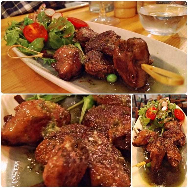 A entrada escolhida foi ‘Couers de Canards en persillade’ (8€), isto é, coraçãozinho de pato assado. Não sei vocês, mas essa foi a primeira vez que experimentamos essa iguaria. Apesar de coração de frango ser comum nas churrascaria Brasil afora, é raro termos a oportunidade de comer pato e seus derivados por aqui. Nada mais justo que iniciarmos nossa refeição em um restaurante chamado Le Chanard (‘Canard’ = Pato em francês) com um prato como esse <3