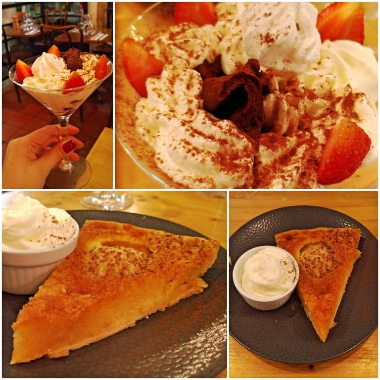 E então chegou a hora do doce! Para as sobremesas uma torta de pera, a “Tarte aux poire Amandine” (6€). E uma taça linda e deliciosa de morangos com o melhor chantilly, aquele feito em casa! O nome em francês é “Coupe de fraises gariguettes et chantilly maison” (7,5€).