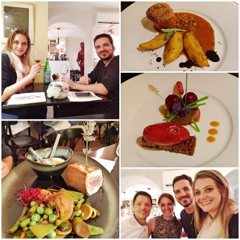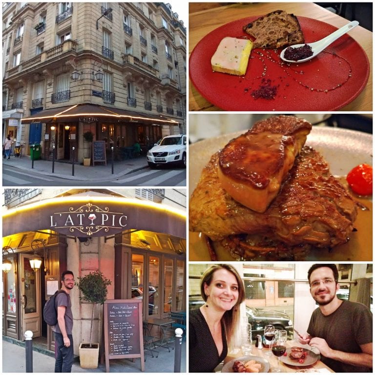 Pudemos experimentar o ótimo Foie Gras da casa acompanhado de torradas doces como entrada. Em seguida, com nossos pratos principais nos esbaldamos na proposta bem elaborada e apresentada pelo Chef: um Filet de Canette au miel e o Tournedos Rossini façon L’ATYPIC. Dois pratos bem marcantes e deliciosos em suas combinações. O L’Atypic tem um ambiente acolhedor, tranquilo e até mesmo informal embora tenha pratos de apresentação sofisticada. Nas mesas ao nosso redor, pudemos perceber a presença de turistas de várias regiões do mundo mas também uma mesa grande com uma família de moradores locais, possivelmente clientes frequentes.