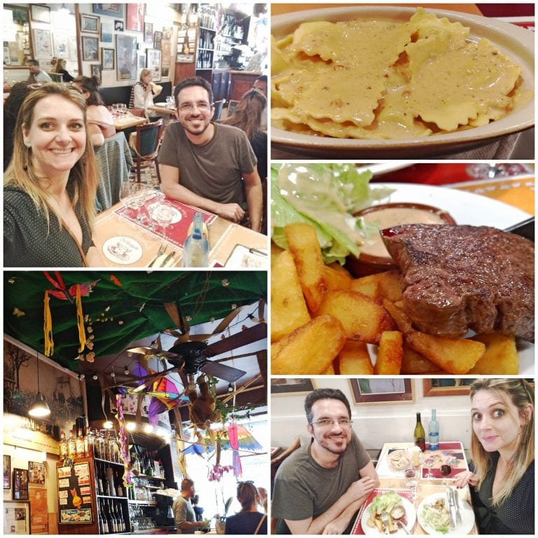 É muito provável que você precise encarar longas filas se chegar nos horários de pico, mas acredite: tudo isso é recompensado com sobras pela boa comida, na forma de pratos típicos e fartos a preços inacreditáveis para a média de Paris. Da entrada até a sobremesa, tivemos uma experiência excelente, com comida simples porém muito bem executada.